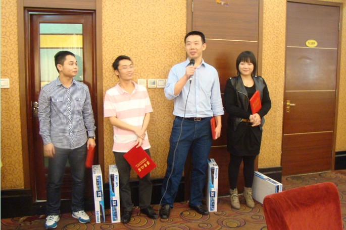 本次年會由領導致辭、抽獎活動、娛樂活動等幾部分組成。年會開始后,公司總經(jīng)理張敏先生首先做了精彩致辭,對公司一年來取得的成就進行了總結,對全體員工的努力和工作成果也給予了高度肯定。張總認為,2012年是齊頂?shù)诙€5年規(guī)劃的過渡之年,我們成果豐碩,而2013年是新的一年,我們將沿著既定的發(fā)展方向和目標堅定不移地走下去,同時隨市場而動,不斷調整完善自己,而這些都需要公司全員的努力奮斗,共同走上新的高度。張總慷慨激昂的致辭給大家增添了無窮的信心。