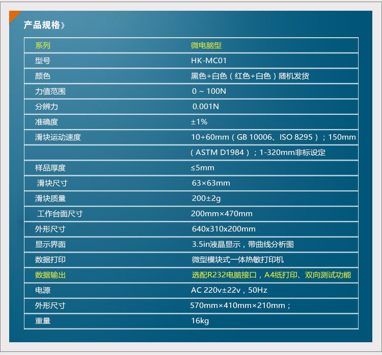 GB 10006, GB/T 17200,GB/T 22895,ISO 8295,ASTM D1894,TAPPI T816,GB/T 2792等各項(xiàng)標(biāo)準(zhǔn)