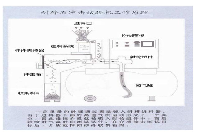 注意:試驗(yàn)前戴好防護(hù)眼罩和防噪耳機(jī)。! (1)首先連接好儲(chǔ)氣罐和沖擊儀 (2)根據(jù)所做標(biāo)準(zhǔn)選擇沖擊箱(角度可調(diào)沖擊箱和3D沖擊箱),如果選擇角度可調(diào)沖擊箱,則根據(jù)標(biāo)準(zhǔn)要求調(diào)節(jié)沖擊角度(45°、54°或90°) 4工作原理 4.1 工作原理圖