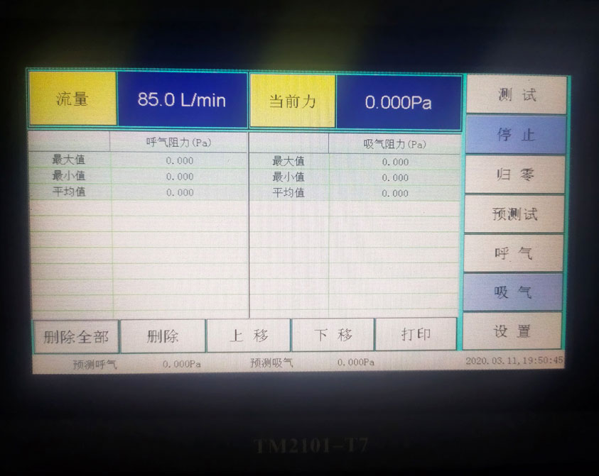 3. 將機(jī)臺(tái)壓力值清零空運(yùn)行呼氣測(cè)一次,吸氣測(cè)一次.